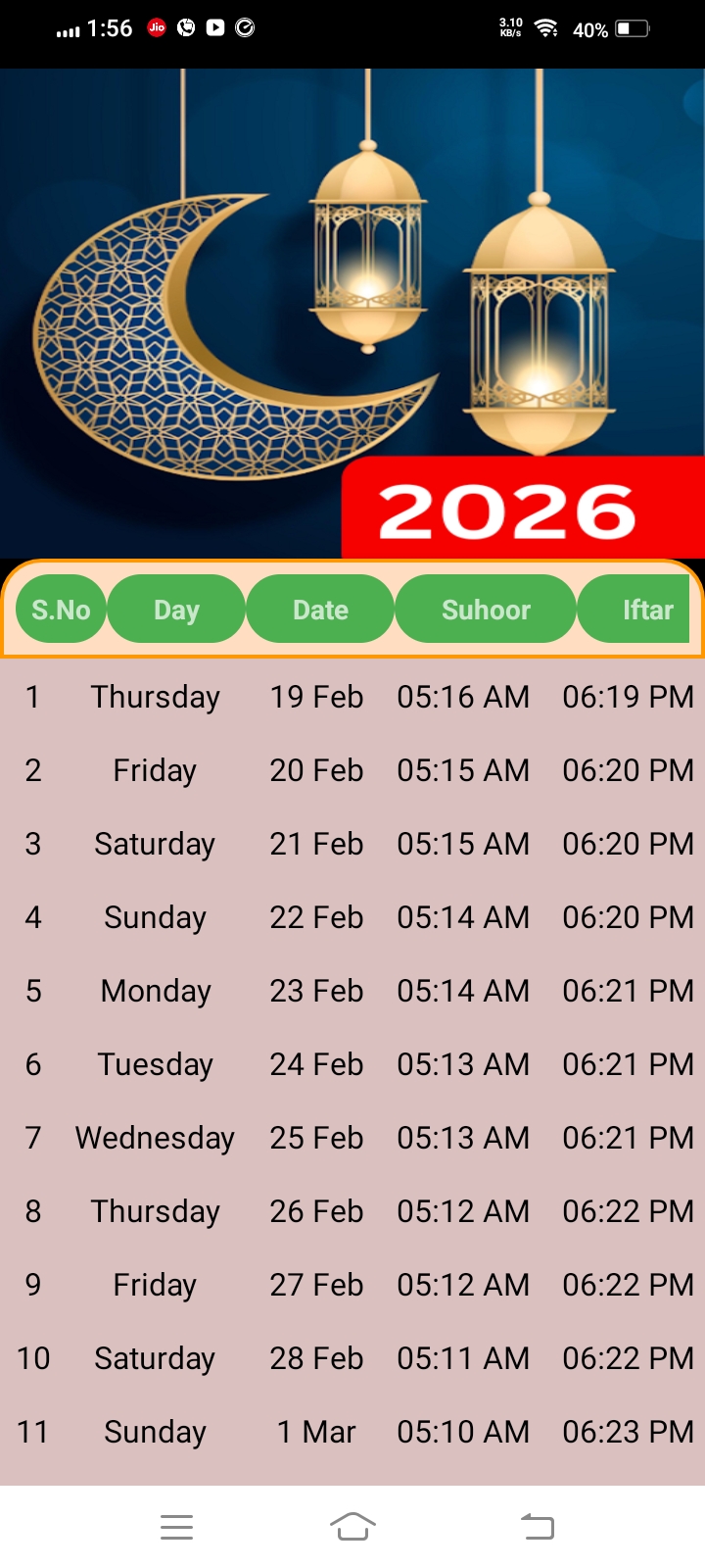 ✔ Ramadan 2026 Calendar – Get Sehri and Iftar timings with daily fasting duas.